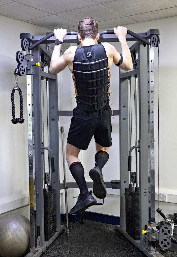 Hyper vest (Hyperwear). I add weights corresponding to around 10% of my body weight.